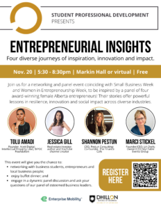Join us for a networking and panel event coinciding with Small Business Week and Women in Entrepreneurship Week, to be inspired by a panel of four award-winning female Alberta entrepreneurs!